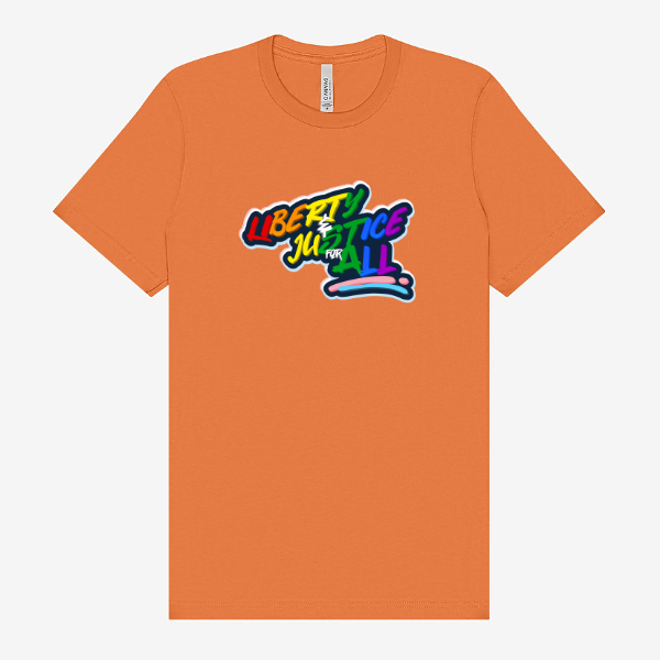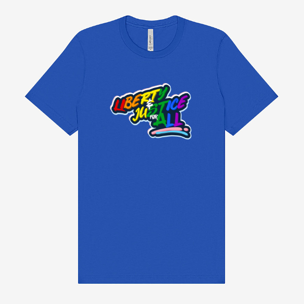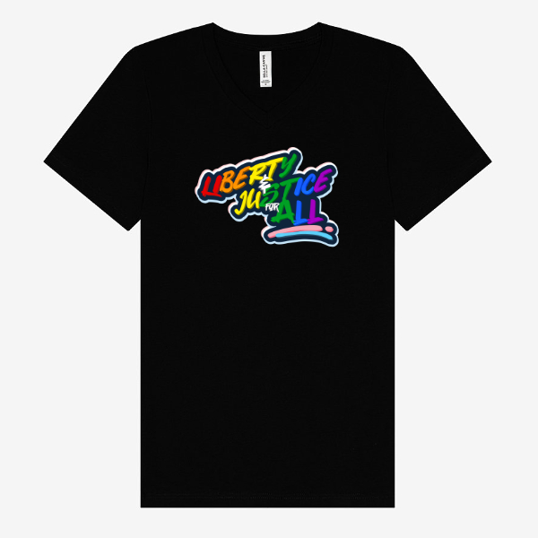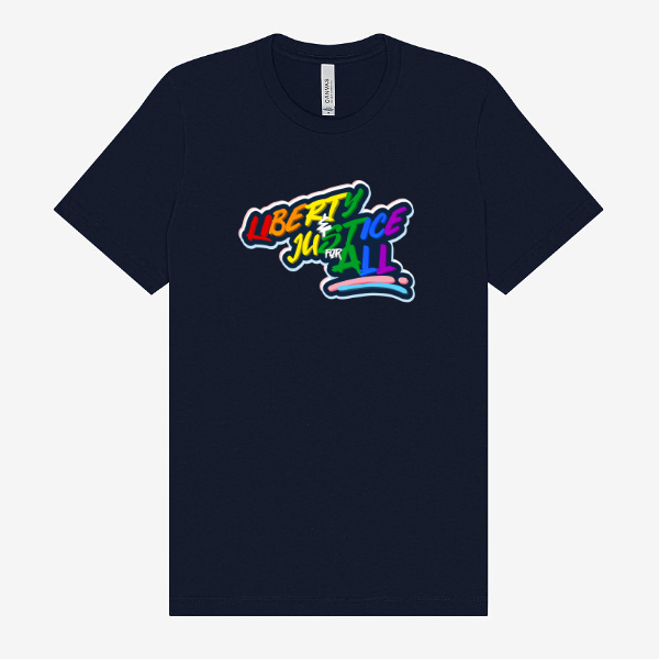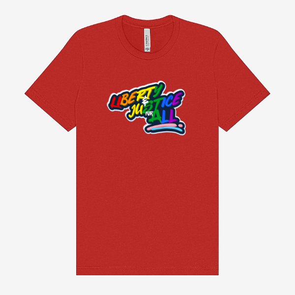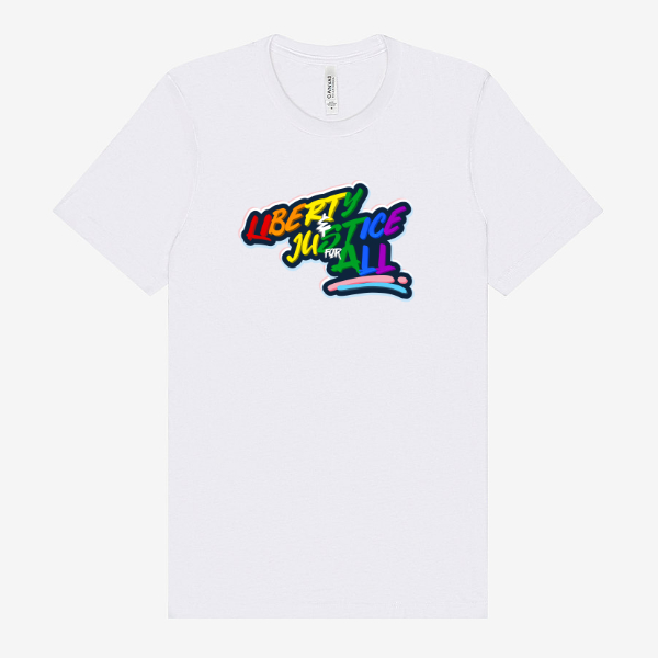 To wear a "Liberty and Justice for ALL" t-shirt isn't a quaint recitation of a national ideal, but also an unyielding demand, a stark reminder of promises perpetually unfulfilled. To boldly wear this garment is an act of defiance, a visceral call to accountability for every shadowed corner where those sacred words ring hollow. It's a defiant whisper that dares to ask: for all, or just for some? This tee becomes a statement of relentless expectation, a visible refusal to let the comfortable illusions of a nation overshadow the raw, undeniable inequities that persist. We must stand up for those that are most vulnerable in this hateful America. Choose from one of three versions in our shop: 80's, Americana or Pride.